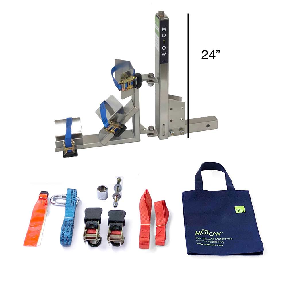 - MoTow® 24″ Motorcycle Tow Hitch with Adjustable Receiver and Custom Tire Cradles